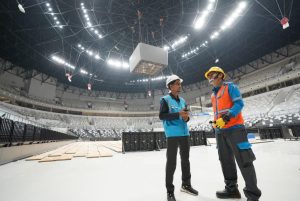 | Petugas PLN memastikan keamanan dan keandalan sistem kelistrikan lokasi venue Indoor Multifunction Stadium (IMS) Indonesia Arena di Gelora Bung Karno (GBK) Senayan, Jakarta. FOTO DOK PLN |