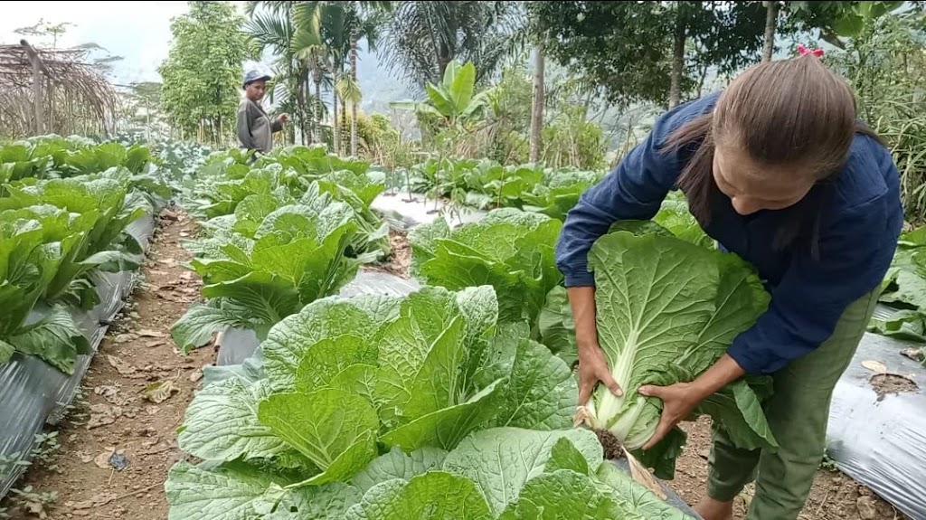 Anggota Kelompok Tani Nera yang merupakan Binaan PLN melalui Program “Desa Berdaya untuk kawasan Geothermal Ulumbu” sedang memanen tanaman hortikultura jenis Fanbox untuk dipasarkan di Pasar Inpres Ruteng. FOTO DOK PLN