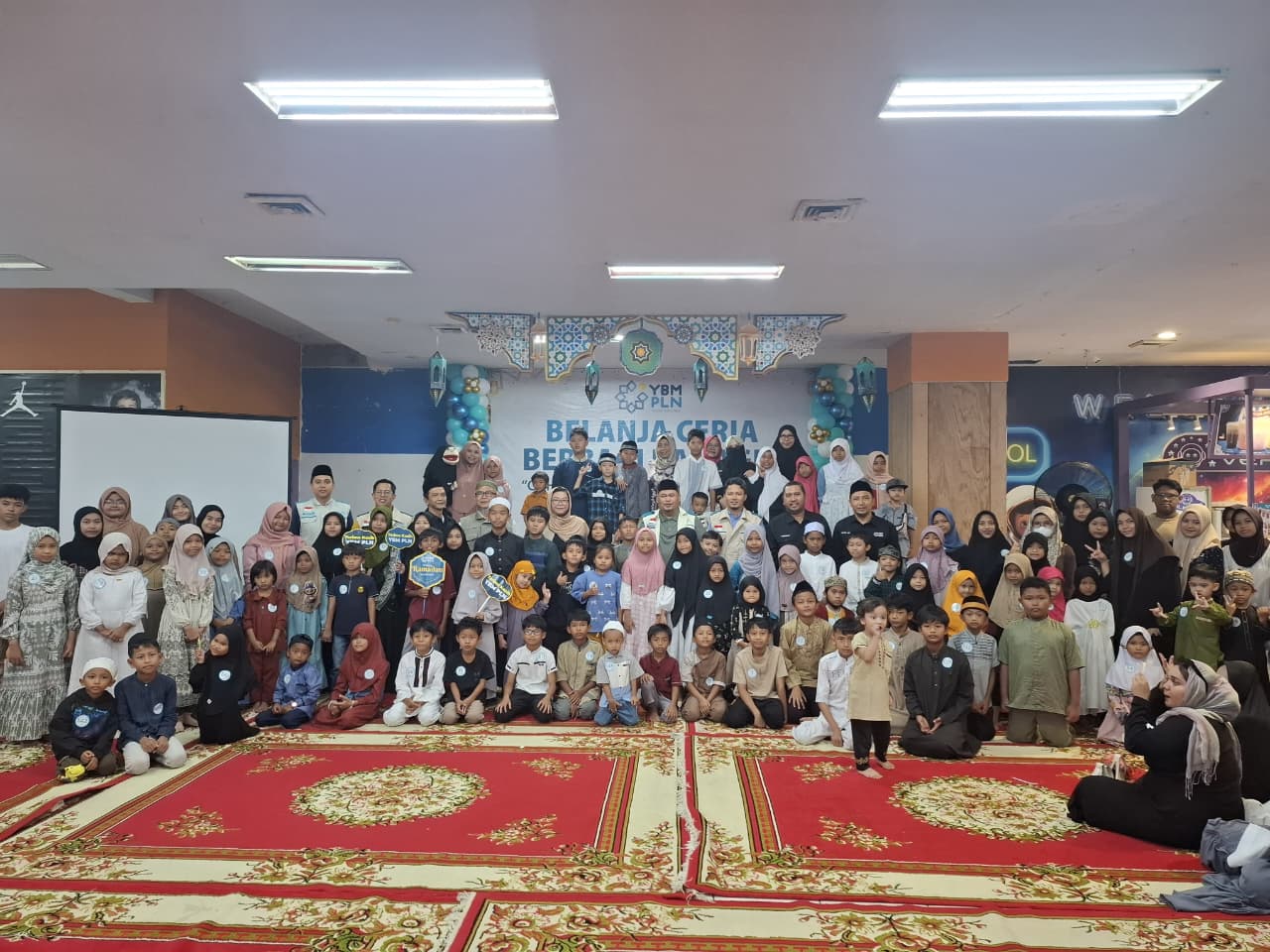 Pengurus YBM dan Manajemen PLN UID Kalbar berfoto bersama anak-anak yatim dhuafa sebelum memulai Belanja Ceria Cahaya Ramadhan 1447 H di Ramayana Mall Pontianak.Ramadhan, berbagi kebahagiaan.(FOTO/DOK/PLN)